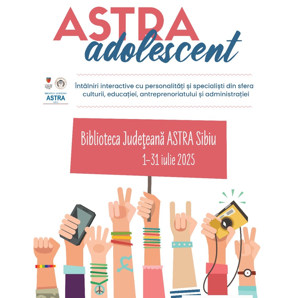 Cea de-a cincea ediție a programului de vară „ASTRA Adolescent” debutează în prima zi a lunii iulie 2025, la biblioteca publică sibiană, instituție care beneficiază de susținerea financiară a Consiliului Județean Sibiu. Tinerii cu vârste cuprinse între 14 și 18 ani sunt invitați să participe la activități care le oferă atât oportunități de dezvoltare personală, cât și un mod plăcut și creativ de a-și petrece timpul liber într-un mediu prietenos și deschis.
