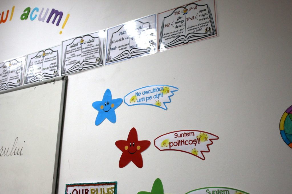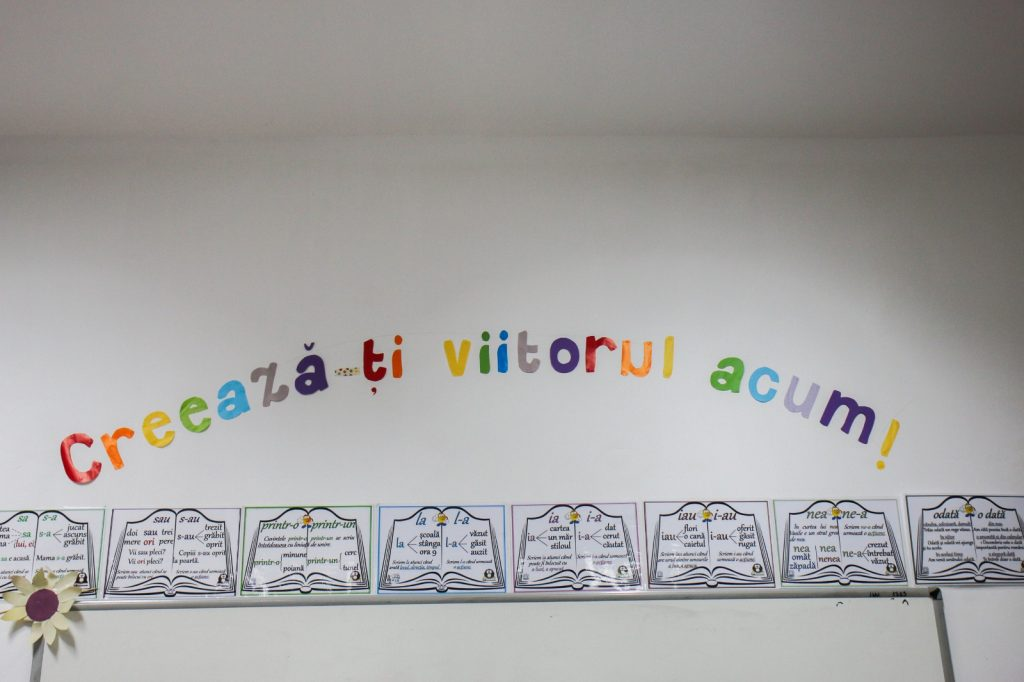 Deasupra tablei scrie, în culorile curcubeului, „Creează-ți viitorul acum!”. E sloganul pe care l-au votat copiii. De fapt, sunt mai multe, împrăștiate pe pereții albi, proaspăt văruiți. În centrul clasei stă Ilinca, pe Scaunul povestitorului. Le spune colegilor despre o carte care i-a plăcut, fiindcă a făcut-o să se gândească la prietenie. În jurul ei, fiecare se îndeletnicește cu câte ceva. Ochii curioși se îndreaptă ba către un desen, ba către andrele care împletesc brățări din elastice de-o șchioapă.