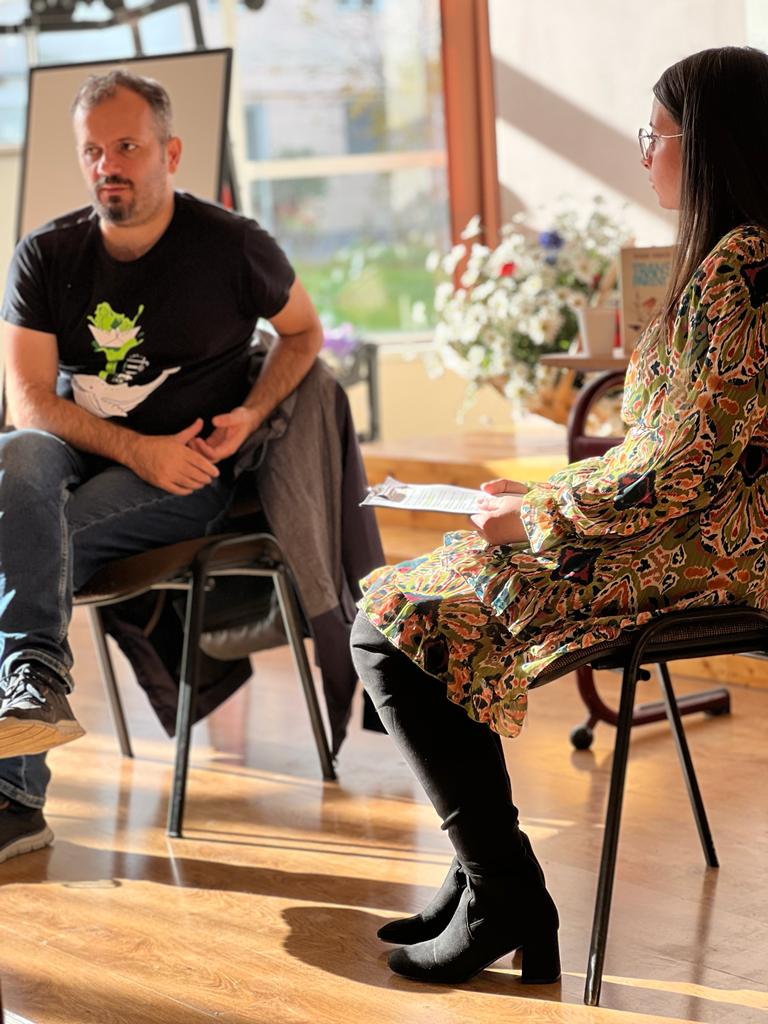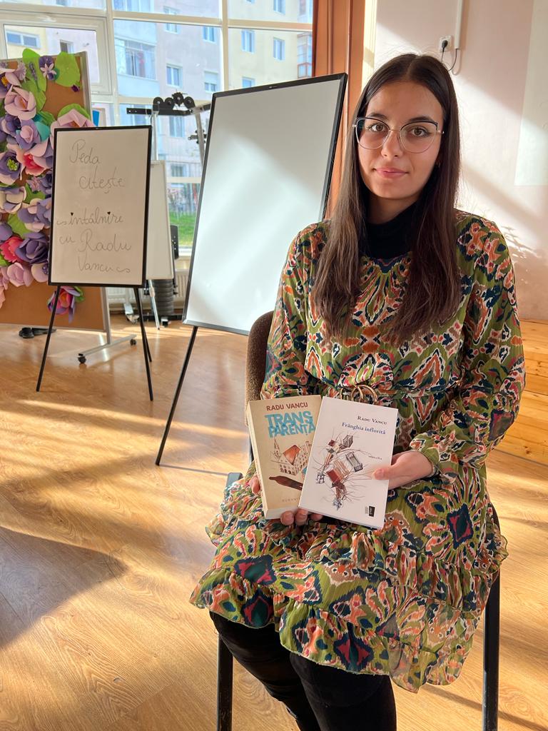 Într-o zi de miercuri, 2 noiembrie 2022, scriitorul Radu Vancu onorează invitația cercului de lectură „Peda citește”, coordonat de profesoara de limba română Adela Dinu. Bucuria crește în momentul în care acest anunț „vine la pachet” cu descoperirea numelui celei care va modera această întâlnire: eleva din clasa a 11-a B, Daria Cuc.