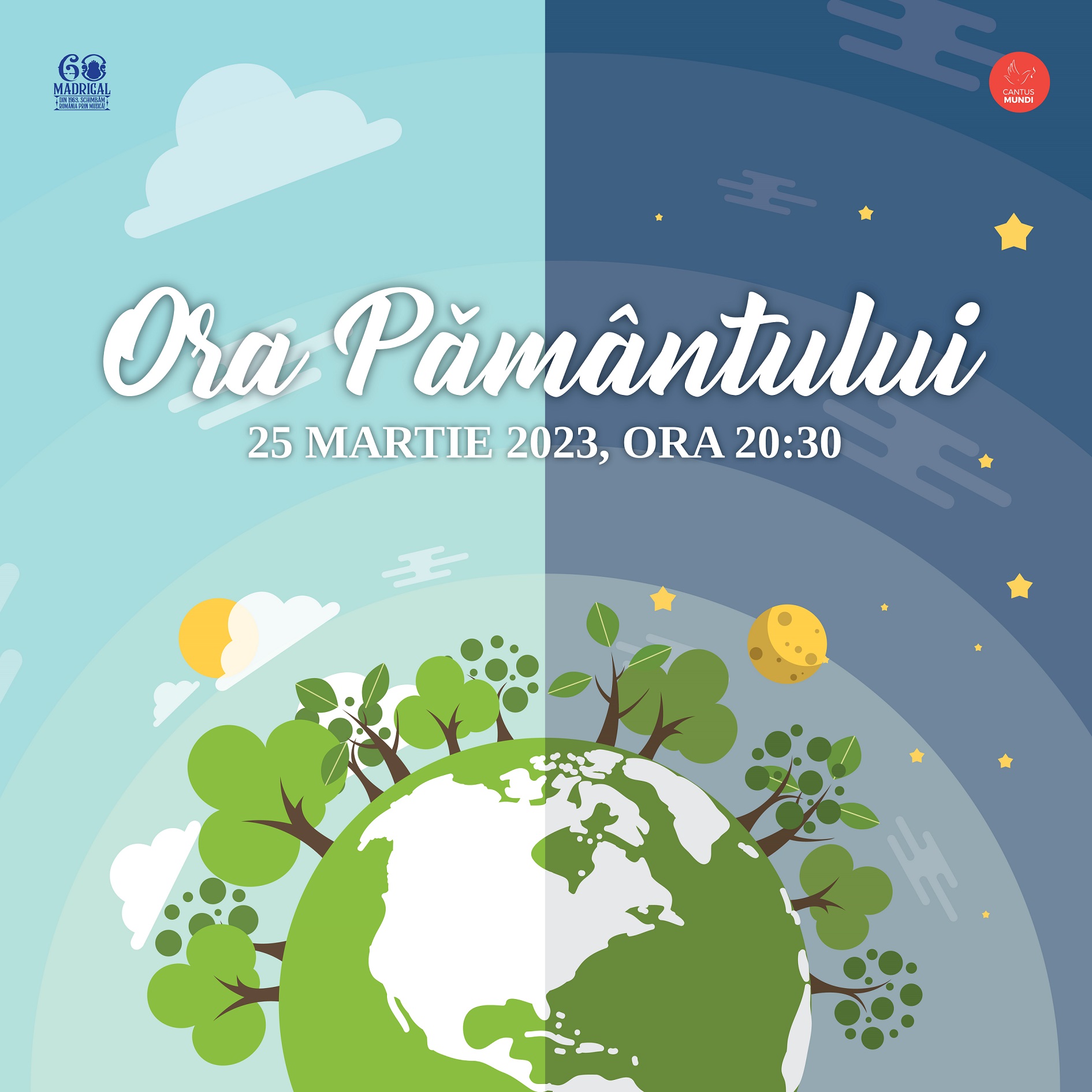 Sâmbătă, 25 martie, între 20:30 – 21:30, peste 8.000 de copii și tineri din corurile și ansamblurile Programului Național Cantus Mundi se vor reuni simultan în toată țara și vor marca Ora Pământului prin concerte, recitaluri și evenimente muzicale. Deviza lor este „Dăruiește naturii din energia ta!”.