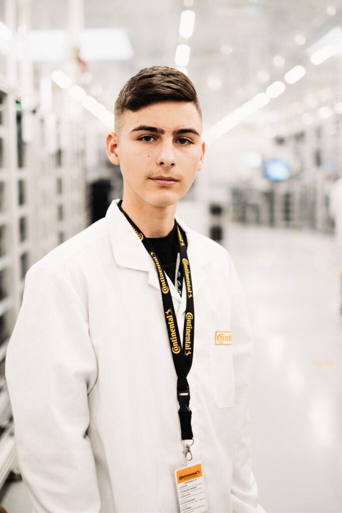 „Am ales Continental în primul rând pentru că îți oferă un loc de muncă stabil după cele 11 clase obligatorii, practic devii muncitor calificat. Am intrat în această clasă cu o medie destul de mare, puteam intra la orice liceu. Plănuiesc să îmi continui studiile după cele 11 clase, să-mi dau examenul de bacalaureat și apoi să intru la facultatea de inginerie. Știu că fabrica mă va sprijini.