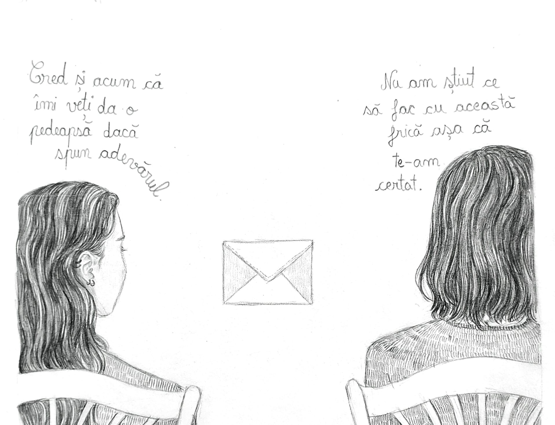 Îți scriu această scrisoare ca să îți spun că nu este vina ta. Am înțeles acum, după multe ședințe, pe care, btw, îți mulțumesc că le-ai plătit, că nu mi-ai vrut răul, dar nu ai știut cum altfel să te comporți mai bine. Am înțeles cum te simți în relație cu tata și în relație cu mama ta – te simți și tu o dezamăgire. Dar să știi că nu aș fi ajuns să gândesc asta dacă nu m-aș fi înțeles puțin câte puțin și pe mine. O parte din mine este încă furioasă pe tine, dar nu te mai acuză.