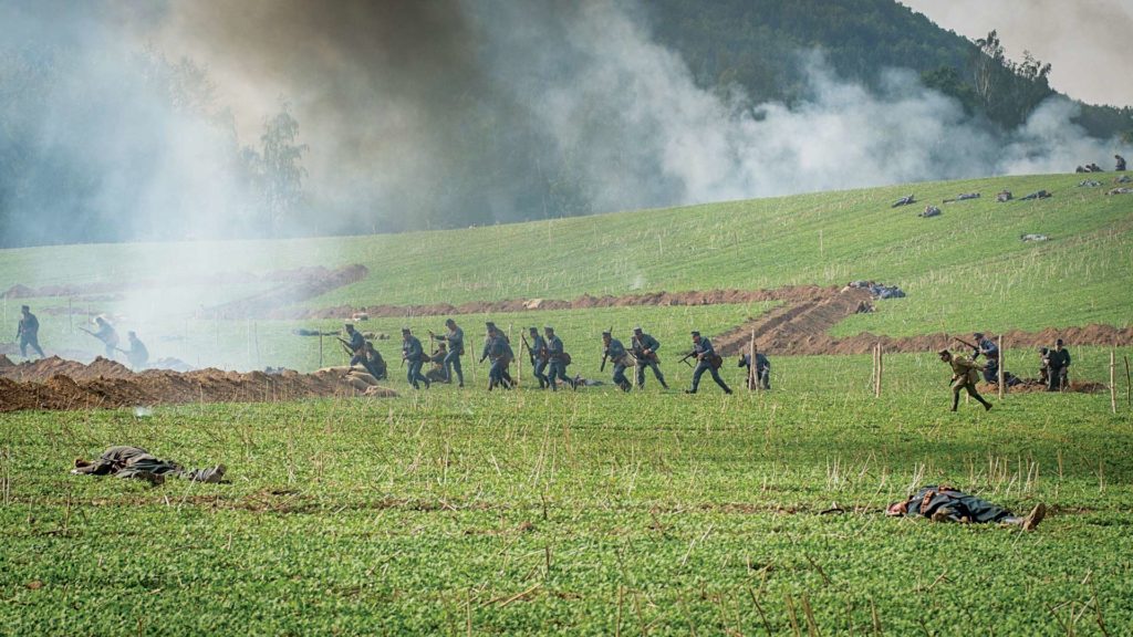 În țară am avut parte doar de festivaluri cu tematică istorică și specific de bivuac sau muzeu în aer liber, iar instrucția rămânea la nivel ceremonial. Recent am fost în Cehia la prima mea acțiune de mare anvergură unde s-a reconstituit o bătălie precum cele date pe frontul de est în prima parte a războiului. Statul la cort, privarea autoimpusă de smartphone, mâncatul din gamelă stând pe pământ, dormitul în uniformă și purtatul unei cămăși aproape 48 de ore fără întrerupere m-au adus, sper eu, măcar cu o găleată de transpirație mai aproape de cătanele cesaro-crăiești din Marele Război. Am făcut instrucție cu arme adevărate și ni s-a împărțit fiecăruia un pumn de cartușe de manevră. Apoi ne-am aliniat în formație, Rechts schwenkt – MARSCH! și am pornit spre câmpul de luptă. Grupa mea făcea parte din a treia Schwarmlinie, adică ultima linie de trăgători care urma să avanseze spre inamic. Știam prea bine că nu voi păți nimic, dar dacă era să trec un prag mental al conștienței, eu trebuia să fiu cu trup și suflet pe frontul din Galiția, iar ceasul minții mele să fie setat la august 1915.